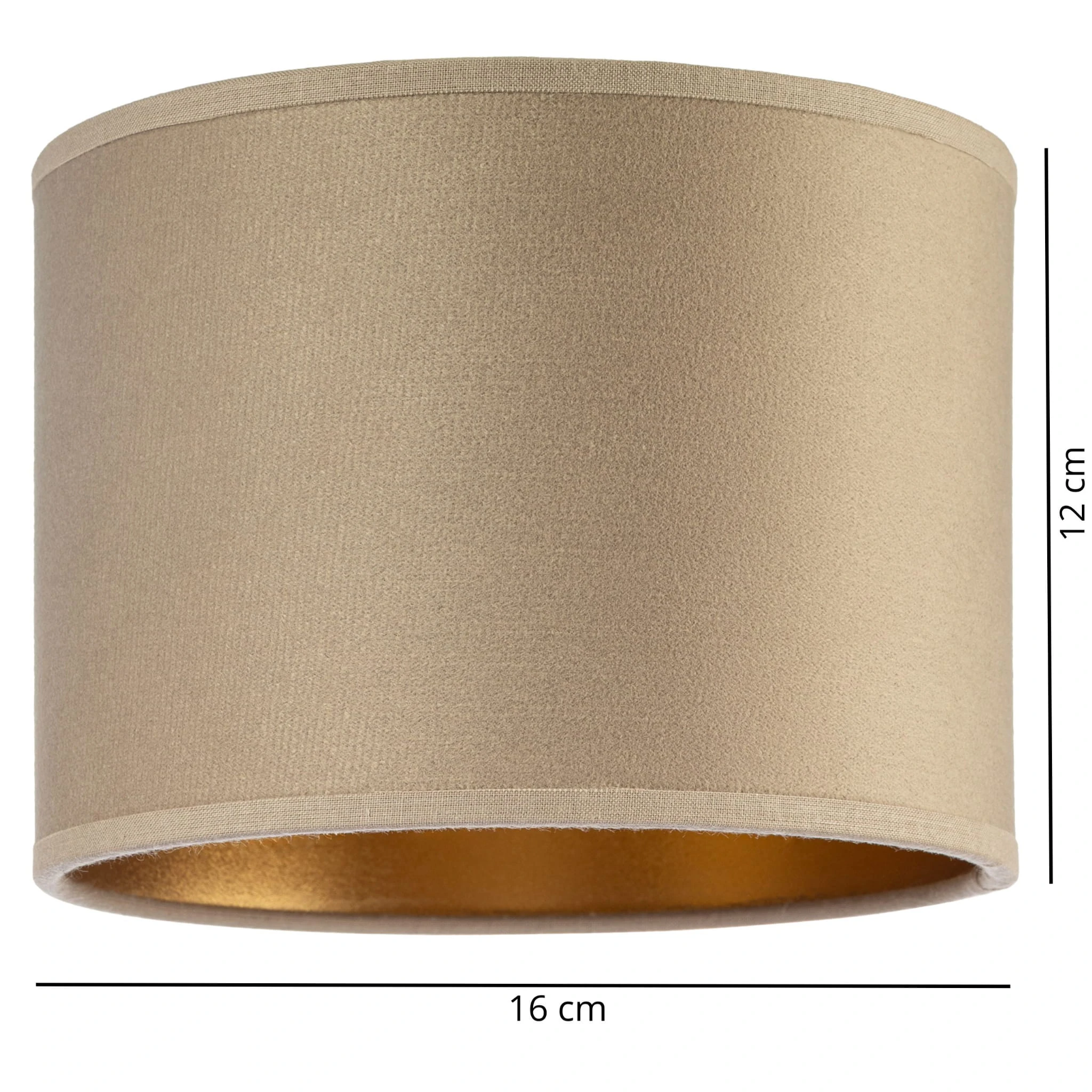 ABAŻUR welurowy okrągły walec tuba 16cm WELUR cappuccino złoty