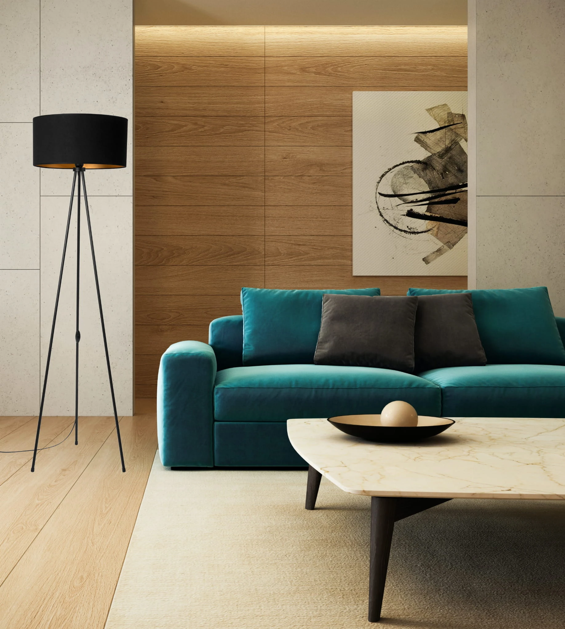 Lampa stojąca podłogowa TRÓJNÓG METALOWY ABAŻUR czarny złoty